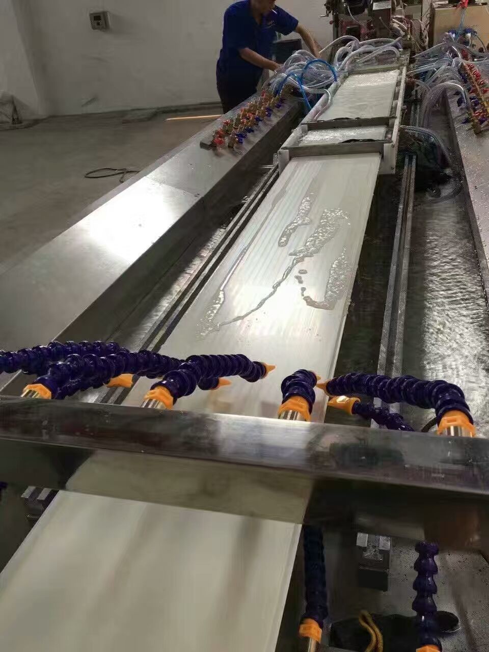 wpc 프로파일은 두 가지 종류가 있습니다. 하나는 pvc 프로파일 + 라미네이션 기계입니다. 하나는 PP / PE + 목재 분말입니다. 원료는 다릅니다. 전체 진압 라인의 레이아웃은 다릅니다. 최근 몇 년 동안,목재가격이 상승하면서, 점점 더 많은 제조는 pvc 프로필을 생산하고 그 위에 다른 필름을 라미네이트합니다.pvc 유형 wpc는 주로 장식용으로 사용됩니다.PP/PE형 wpc는 주로 wpc 바닥으로 사용됩니다.