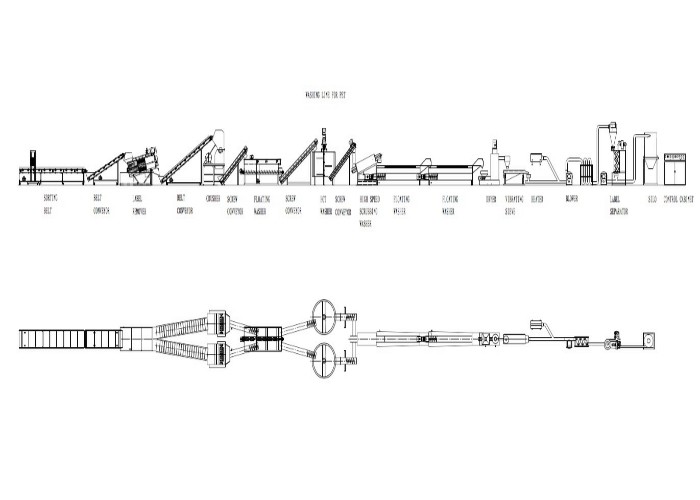 전체 라인의 프로세스: 벨트 컨베이어-플라스틱 크러셔-퍼션 세척 및 탈수 기계-스크류 피더-상승 와셔-고속 마찰 와셔-헹굼 와셔-수평 탈수기-호퍼-스크류 피더-PE PP 2단 압출기-호퍼.전체 라인 장치는 원료의 오염 정도, 포장 방법에 따라 설계됩니다.