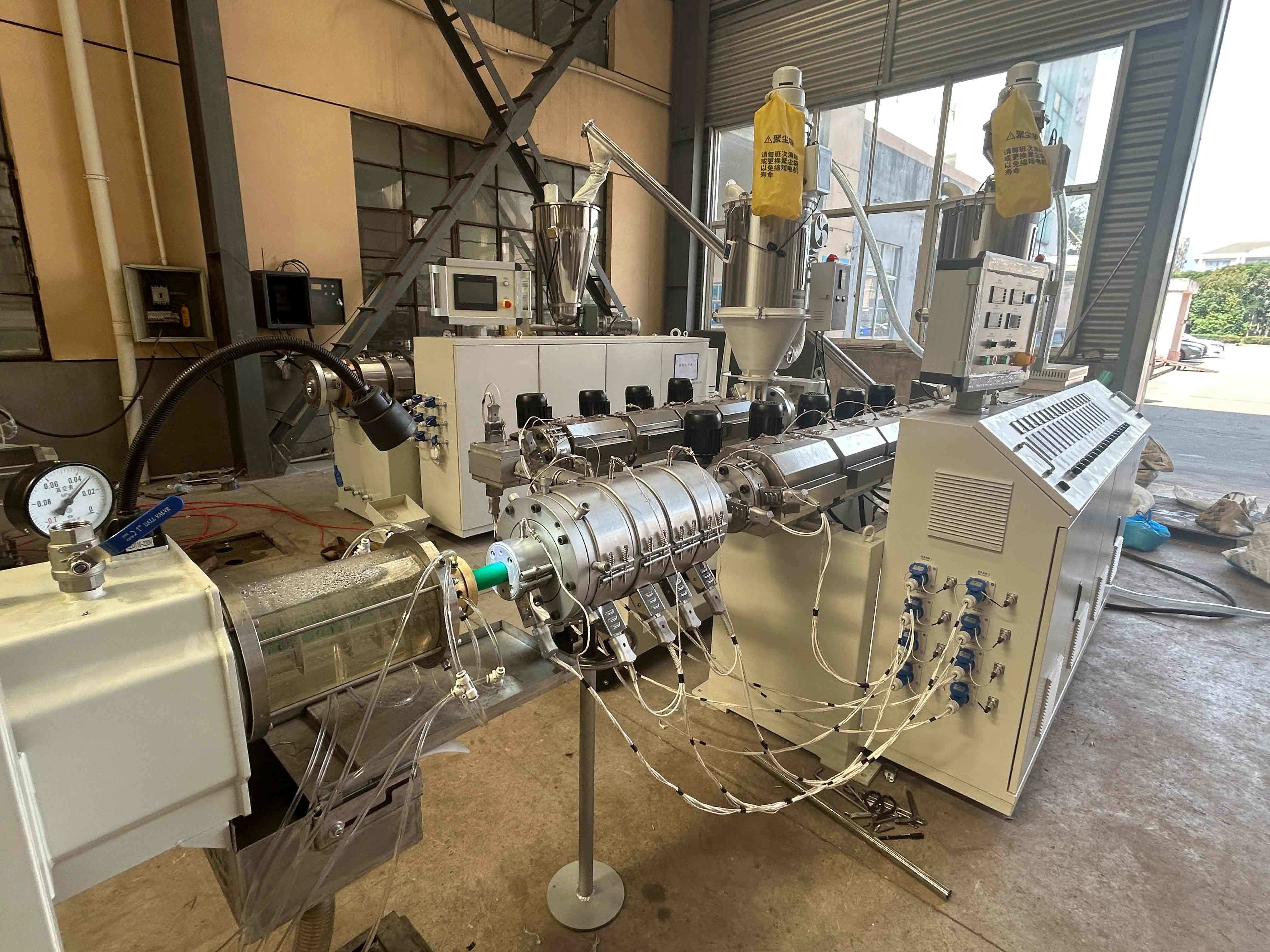 로더 → 드라이어 → 단일 나사 추출기→ 곰팡이→ 진공 및 스프레이 냉각 탱크 → 철거 → 커터/윈더 → 파이프 스택