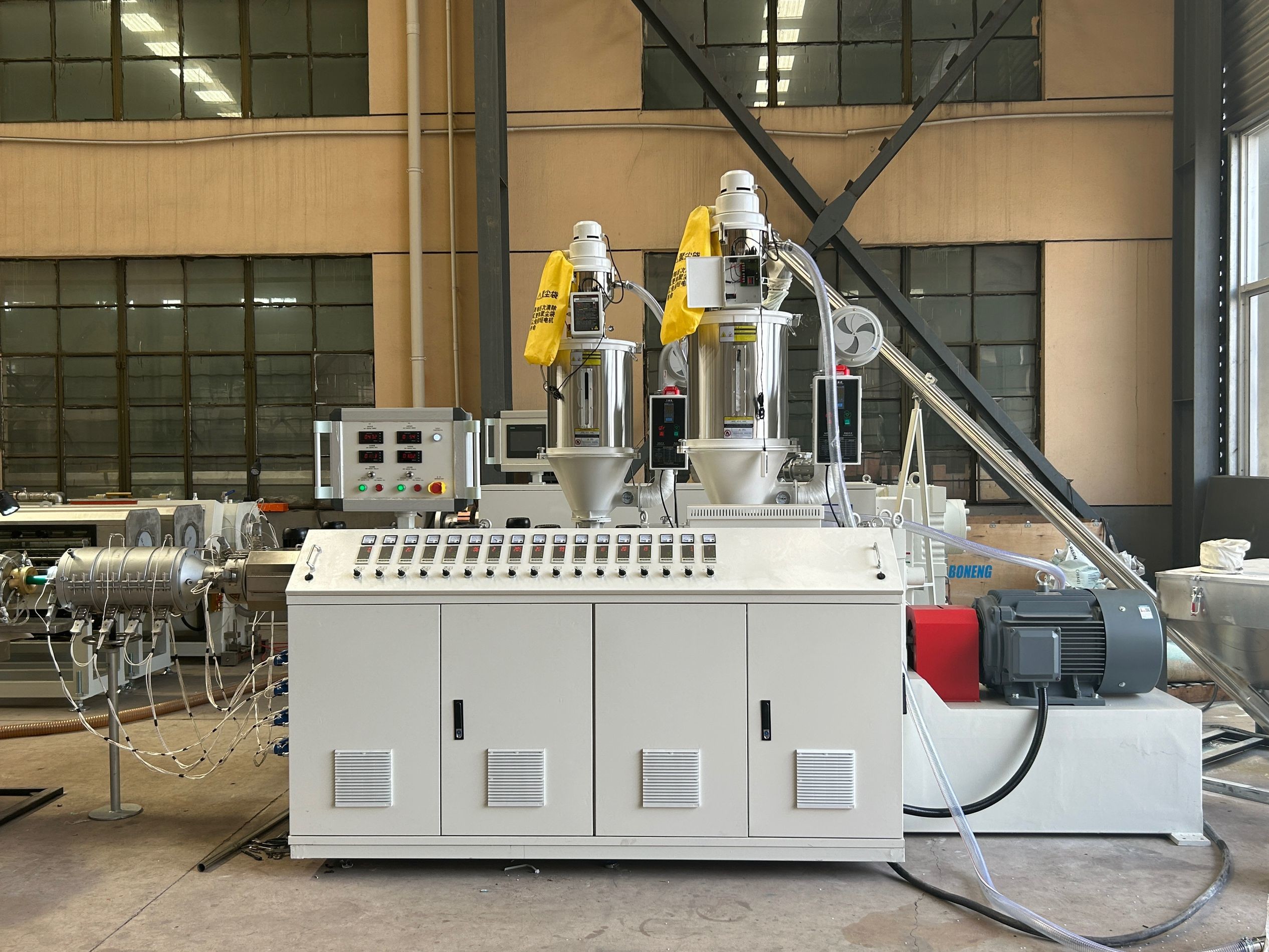 원료 (PPR/PVC 펠릿, 첨가물) 는 자동으로 홉퍼에 공급되고 균일하게 혼합됩니다.