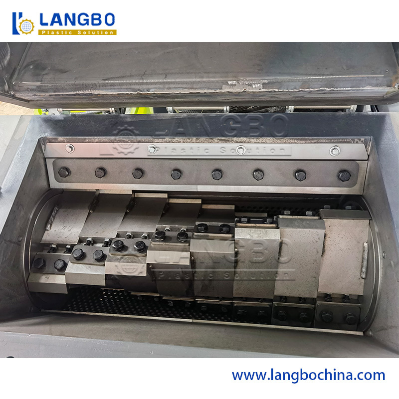 우리의 분쇄기는 최적의 분쇄 효율을 보장하기 위해 특정 재료와 제품 형태에 맞춘 맞춤형 블레이드 구조를 갖추고 있습니다.PE/PP 필름 분쇄기는 V 모양의 블레이드 구성을 사용합니다., 우리의 완전한 재활용 시스템에는 여러 롤러와 함께 플로트 세척 탱크, 1200 RPM에서 작동 마찰 세척기,그리고 최종 수분 함유율 5-8%를 달성하기 위해 1500 RPM로 회전하는 탈수 기계.
